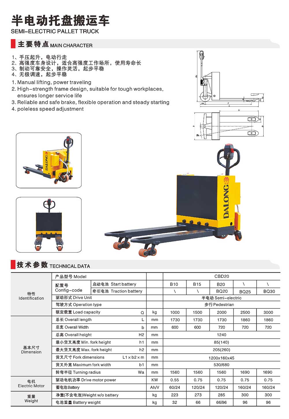 CBDB半電動托盤搬運車